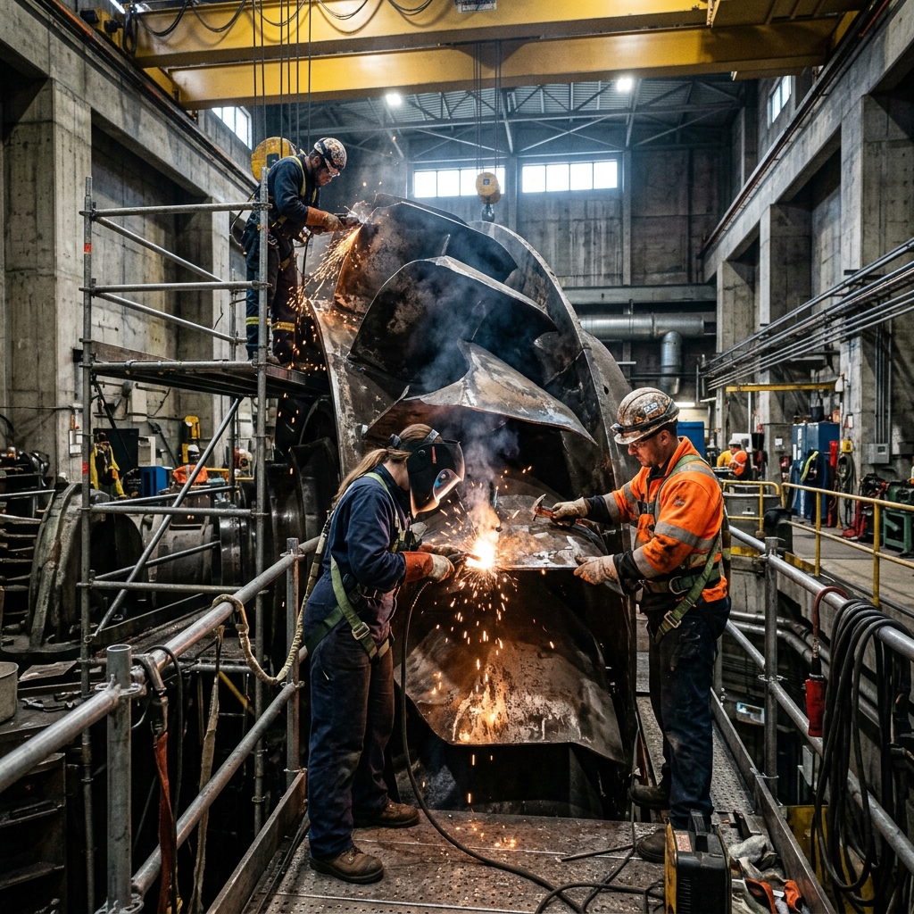Turbinas e geradores com 30-40 anos operando perdem rendimento. Substituir por equipamentos modernos pode aumentar a geração em 10-25% sem tocar na barragem.
